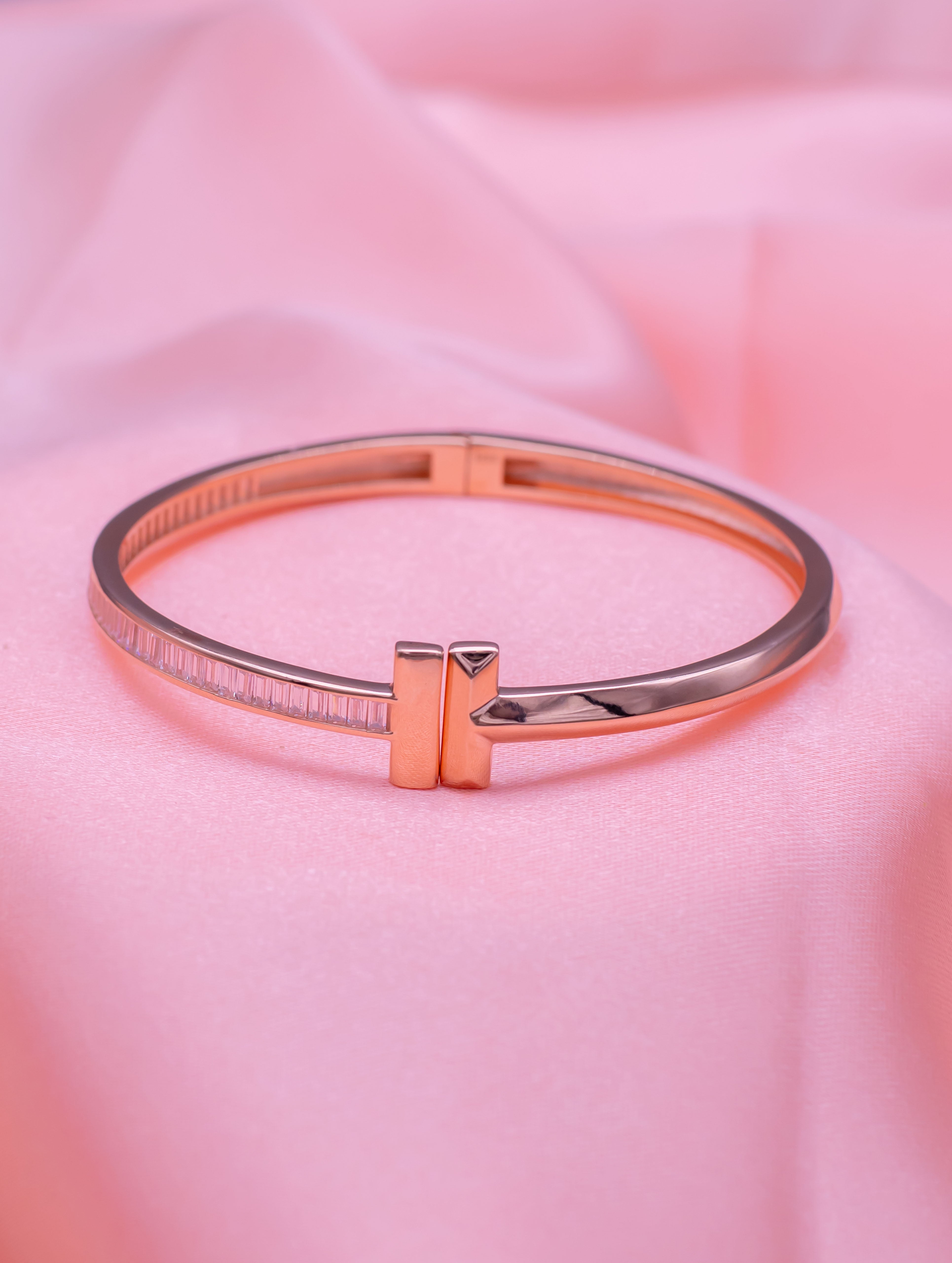 A delicate rose gold bracelet embedded with shimmering Swarovski zircon stones. Feminine, stylish and ideal for soft, romantic gifting.