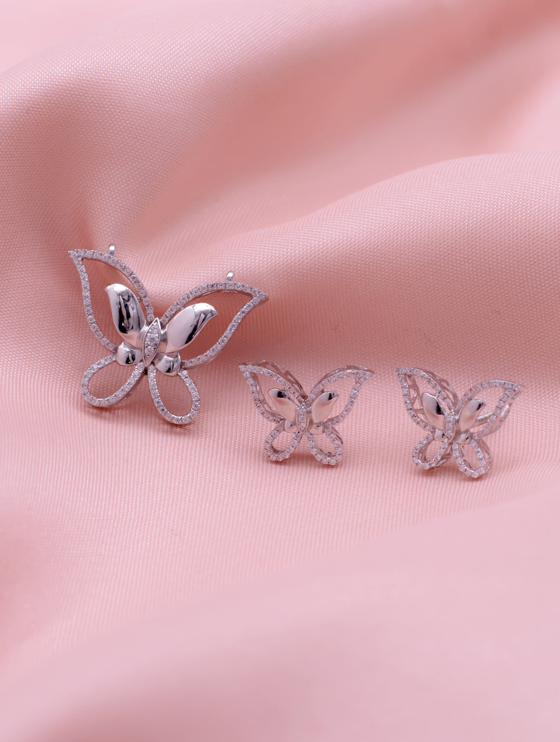 Silver-Tone White Stone Butterfly Pendant & Earrings Set