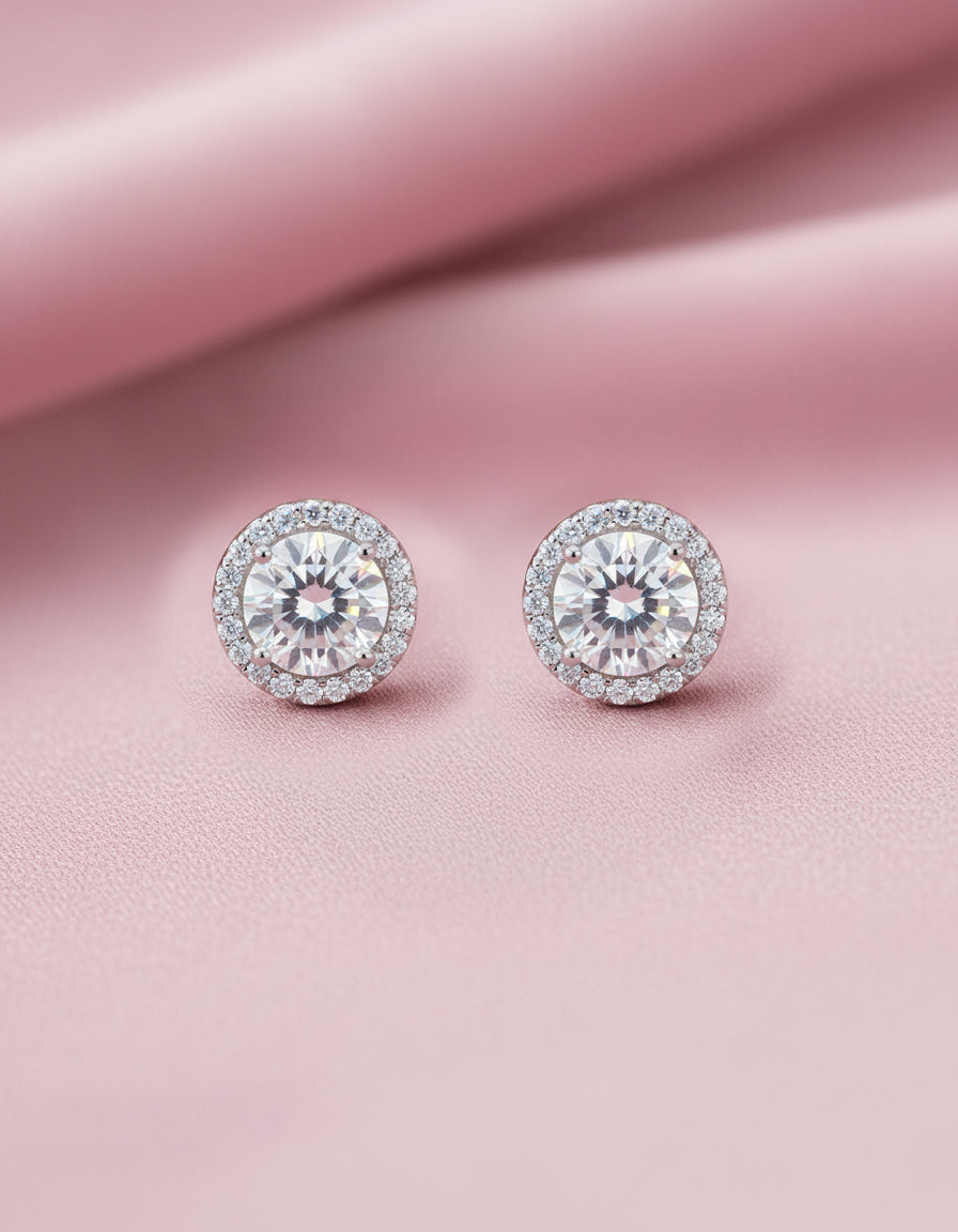 Solitaire Zircon Silver Earrings