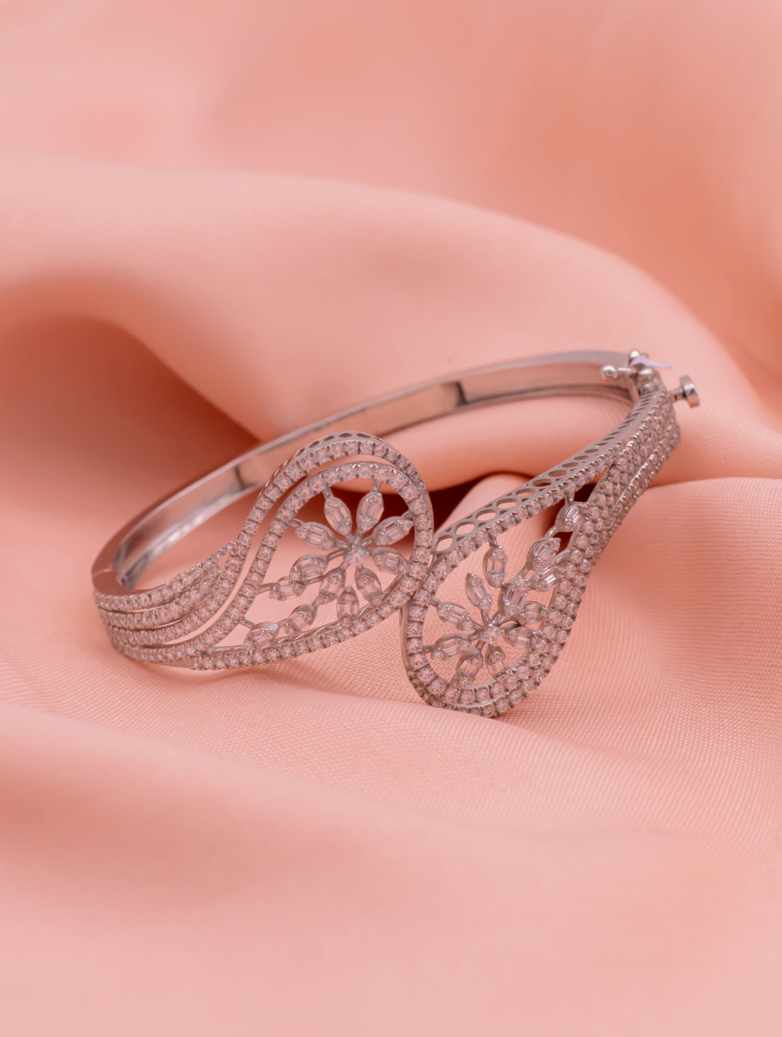 Sterling Silver Floral Motif Openable Bracelet