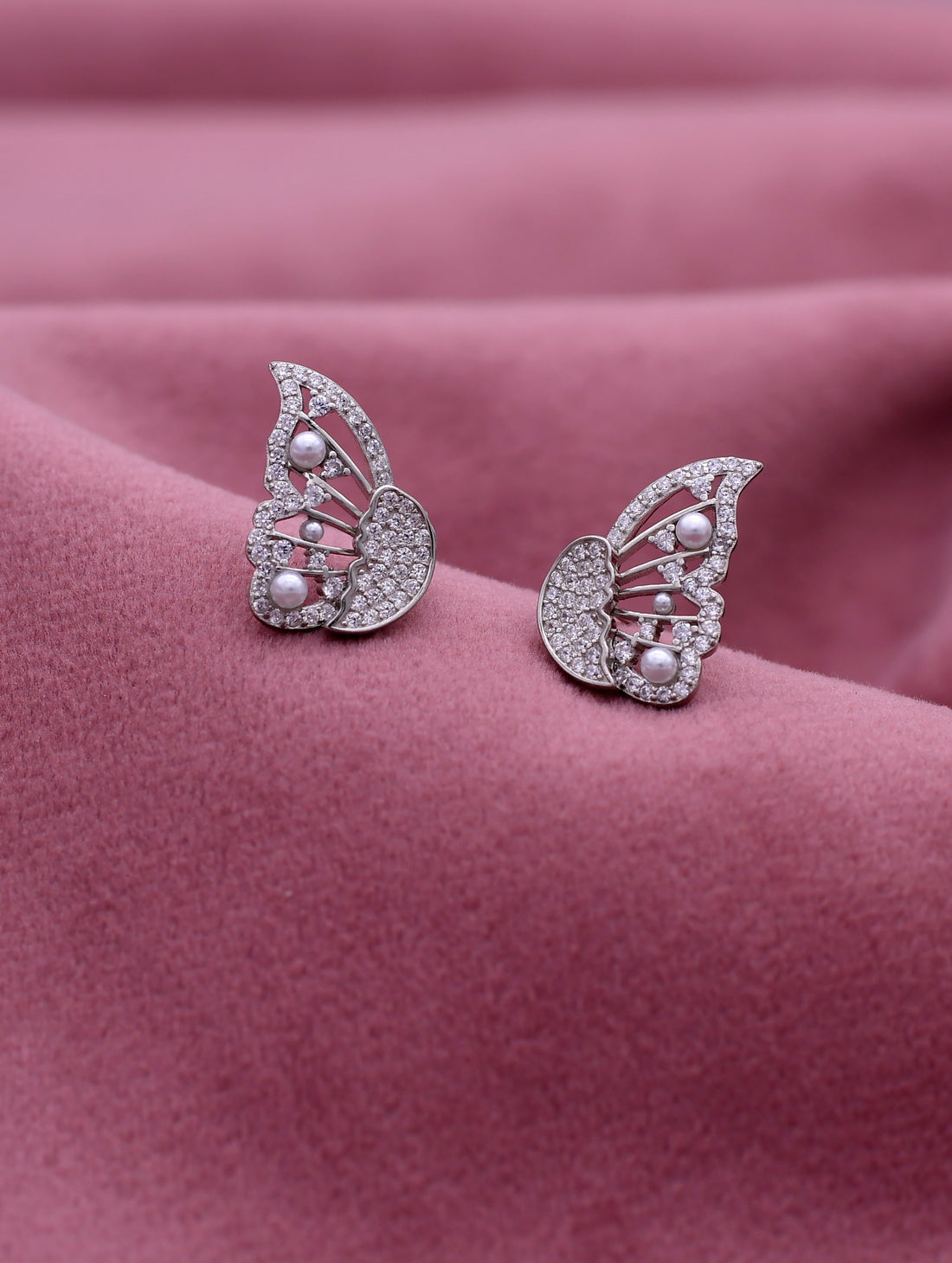Tiny Flutter Swarovski Zircon & Pearl Earrings