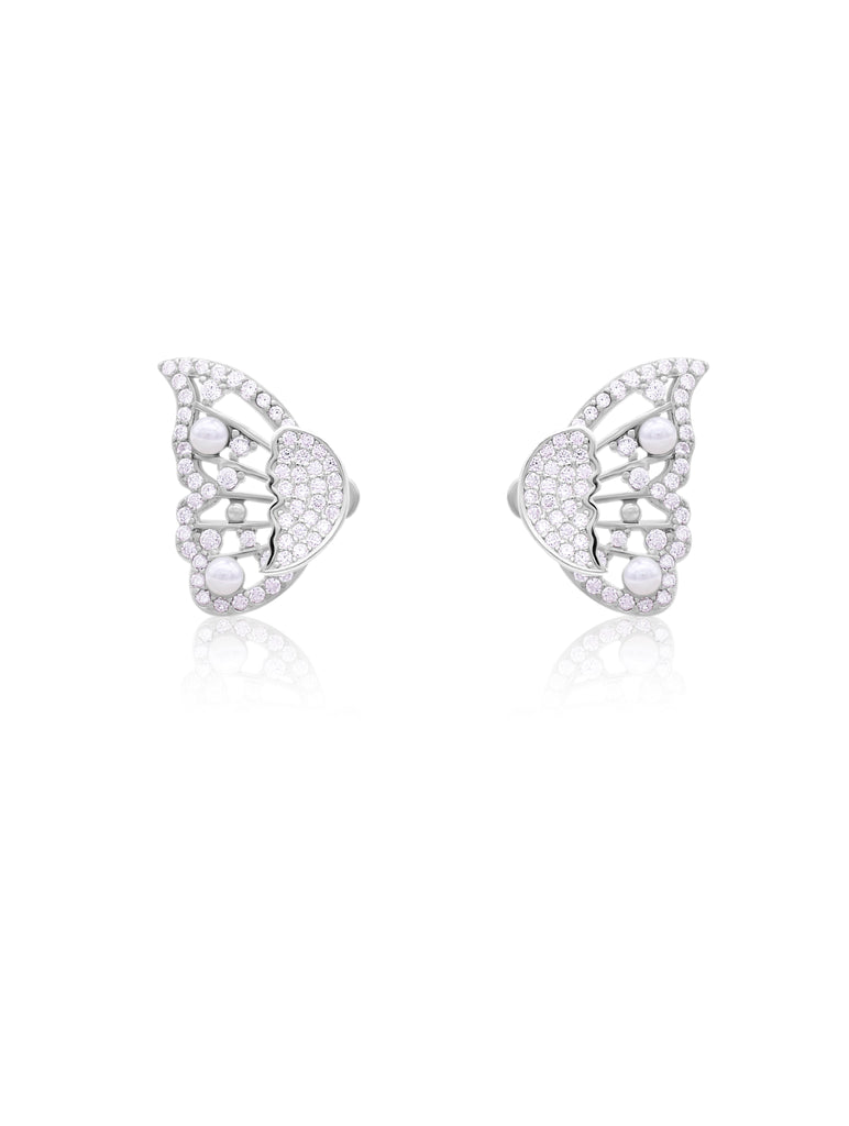 Tiny Flutter Swarovski Zircon & Pearl Earrings