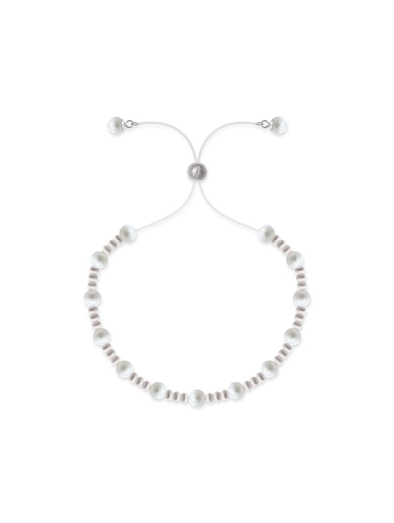 Designed for effortless style and comfort, this adjustable bracelet blends delicate sterling silver beads with radiant white pearls. Its versatile design and classic elegance make it a perfect accessory to complement any outfit, from everyday wear to special occasions.