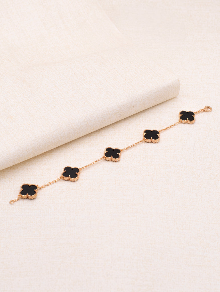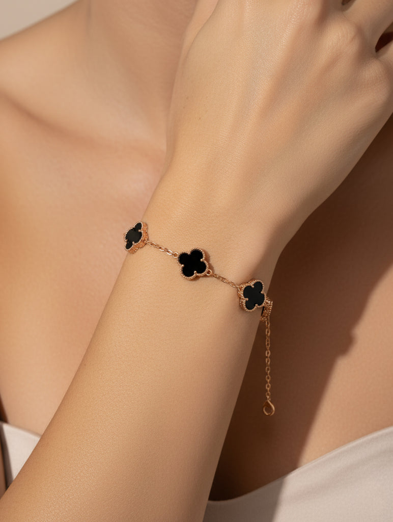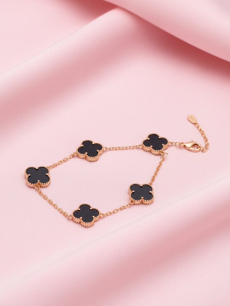 This elegant silver rose gold chain bracelet features uniquely shaped accents, each adorned with luminous mother of pearl placed at balanced intervals. The subtle shimmer and refined design add a graceful touch, making it a timeless accessory for any occasion.