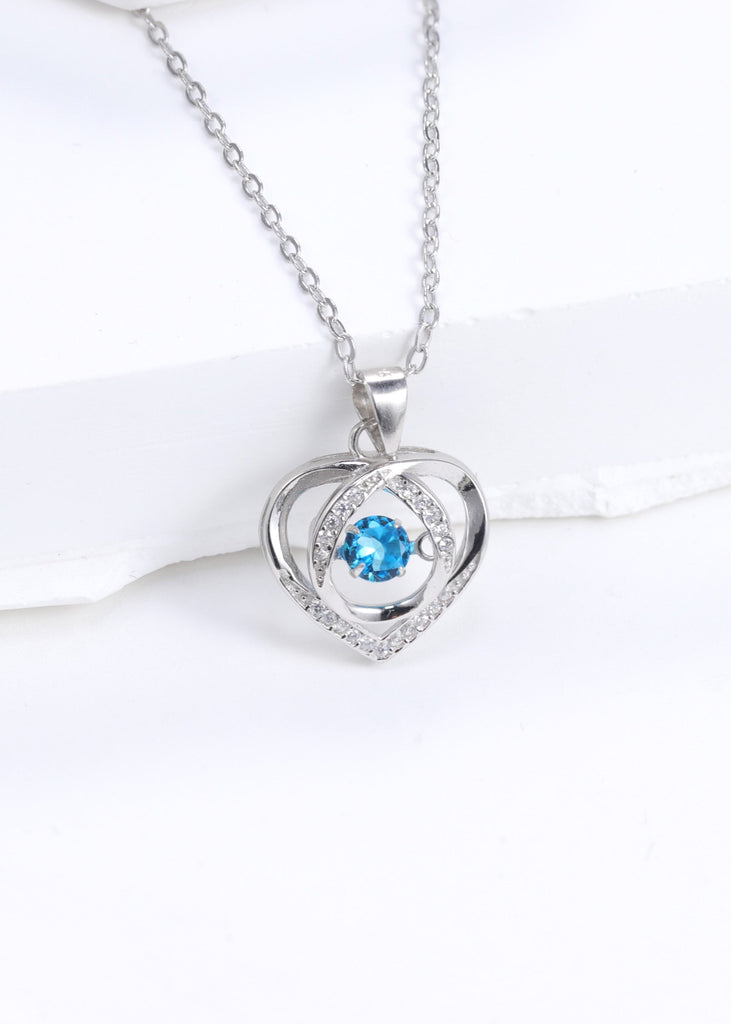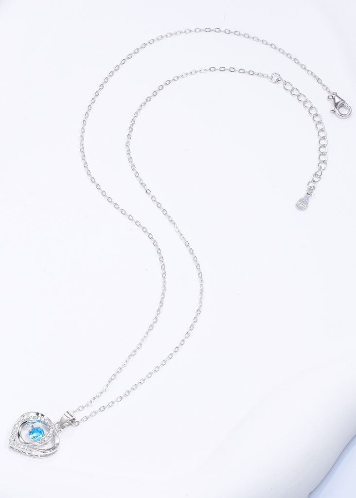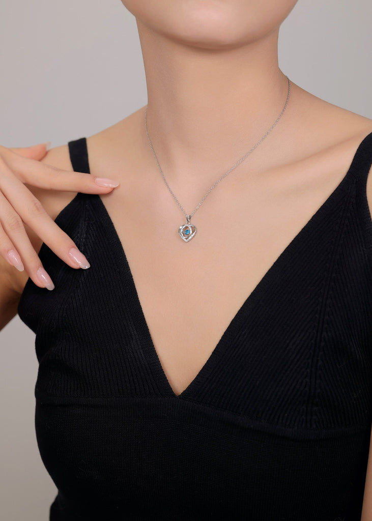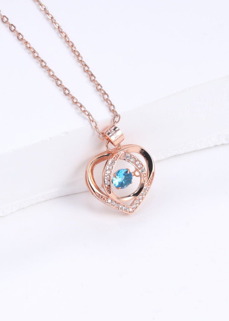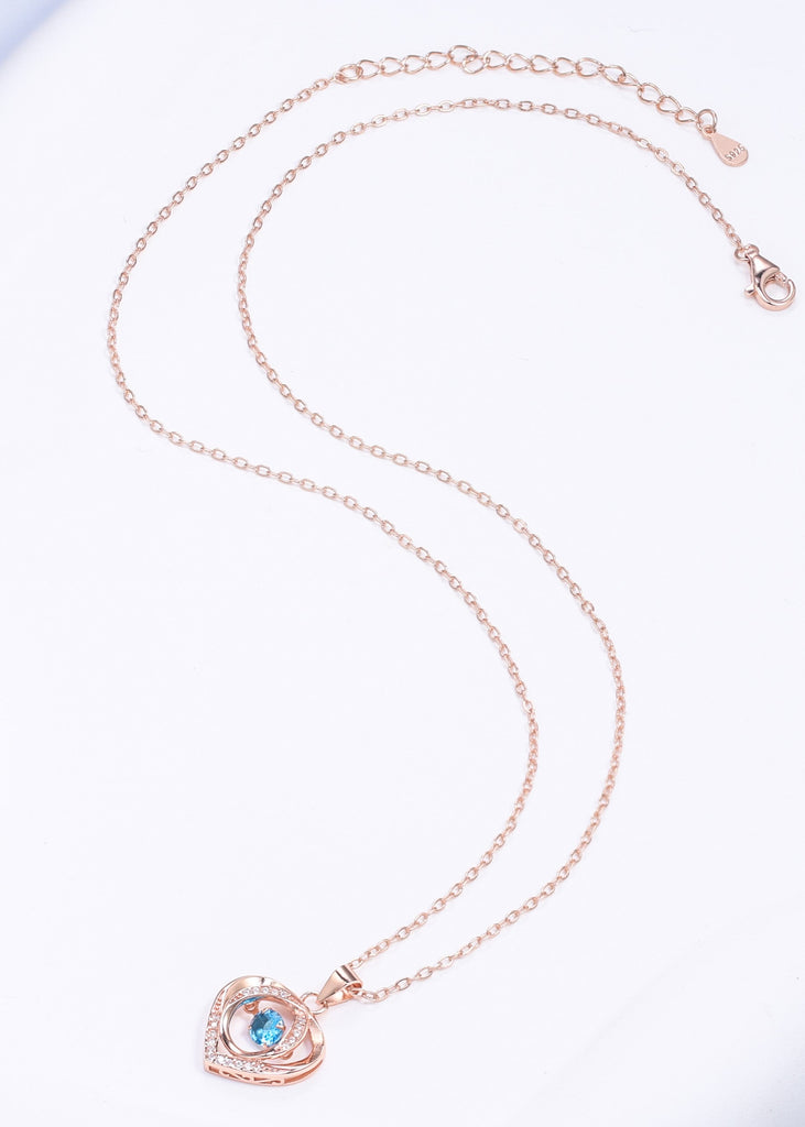 Discover the charm of our sterling silver chain, available in both silver and rose gold finishes. Featuring a heart pendant with a small blue stone at its center, this elegant piece adds a touch of love and sophistication to any outfit, perfect for both everyday wear and special occasions.