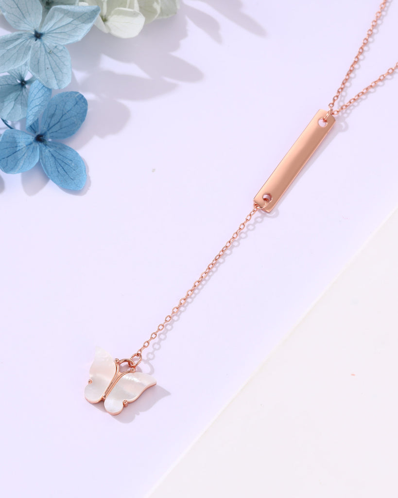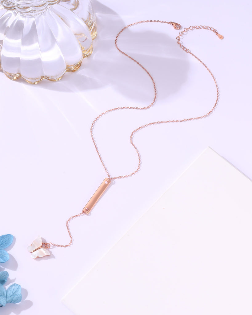 A rose gold sleek chain with a mother of pearl (MOP) butterfly pendant adds a whimsical and feminine touch to the overall look. This type of chains would be versatile enough to wear with both casual and formal outfits, making it a lovely addition to any jewelry collection.
