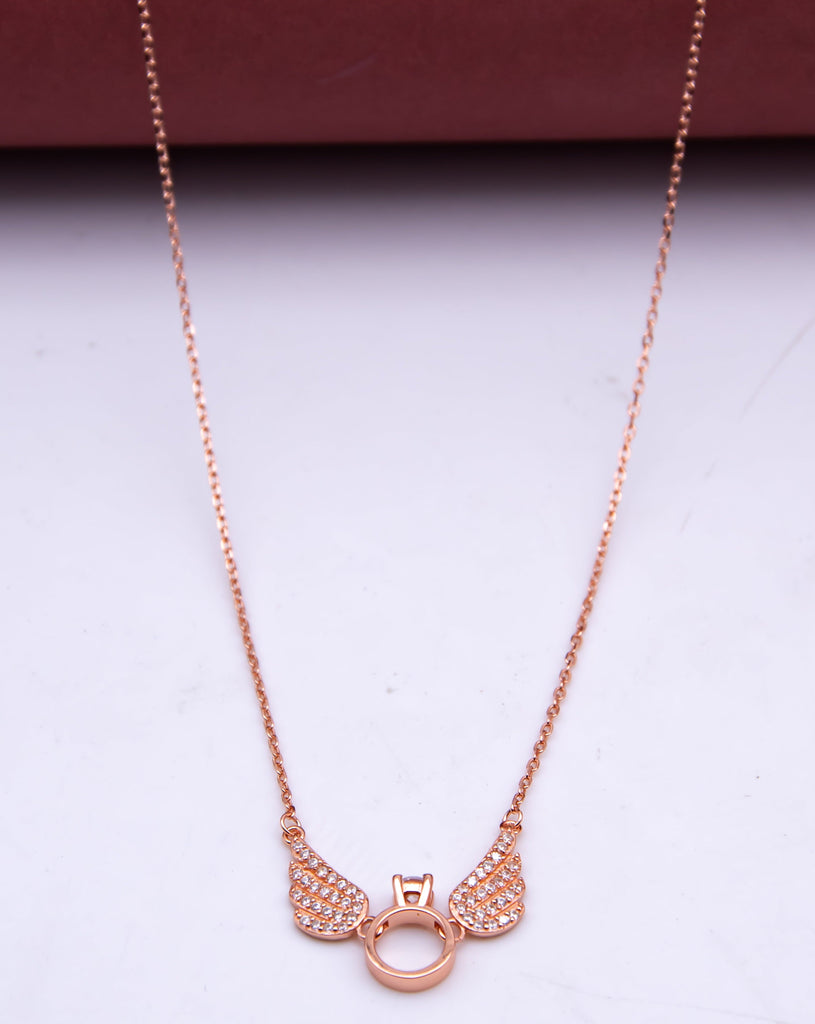 Exude elegance with our exquisite 92.5 sterling silver wing chain featuring a stunning solitaire centerpiece. Crafted to perfection, this timeless piece effortlessly blends sophistication with subtle charm, making it a must-have accessory for any occasion.