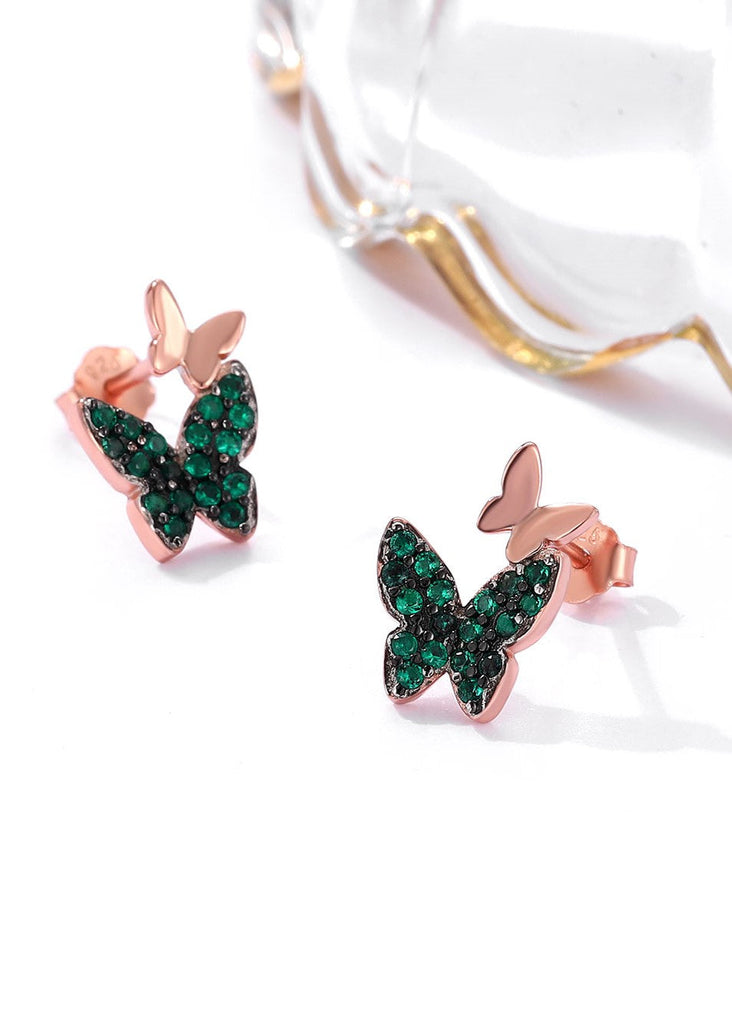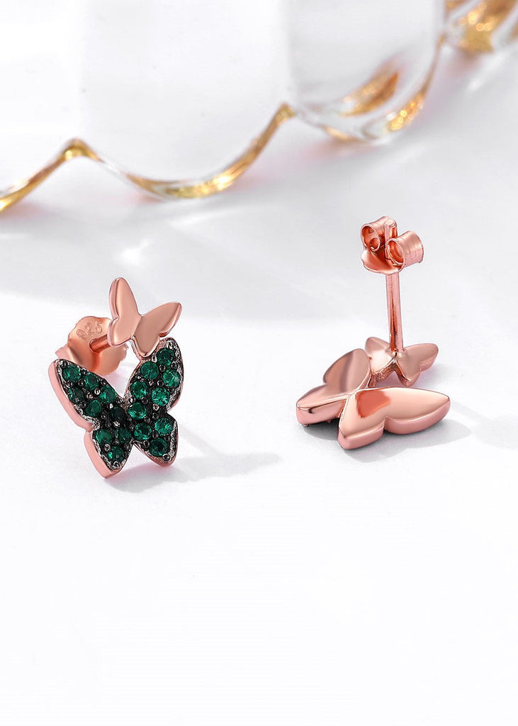 Embrace elegance with these butterfly-shaped rose-plated earrings, a unique blend of nature's grace and exquisite craftsmanship.