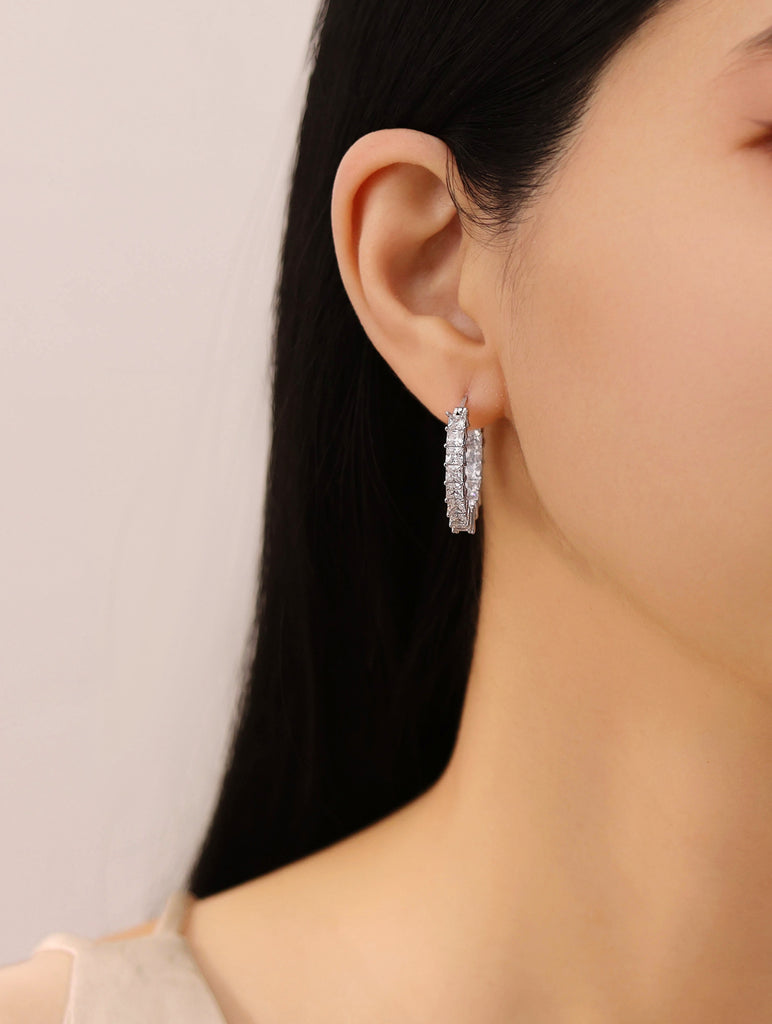 Bring subtle sophistication to your look with these elegant silver small loop earrings. Embellished with sparkling stones that reflect light beautifully, they exude classic charm and refined style. Perfect for dressing up a casual outfit or adding the finishing touch to a special occasion ensemble, these earrings are a versatile accessory you’ll reach for time and again.