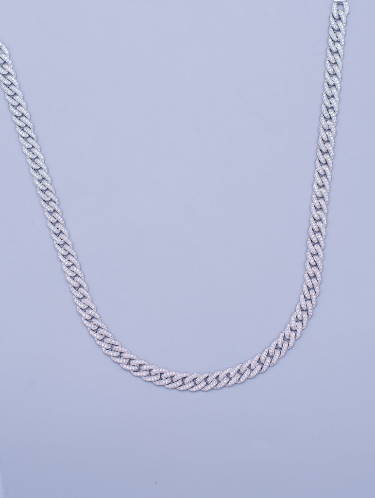 This silver Cuban chain is an iconic piece of jewelry that exudes timeless style and sophistication. The Cuban link chain is known for its smooth, curved edges that allow the chain to sit comfortably on the wearer, making it a favorite among those who appreciate both style and durability.