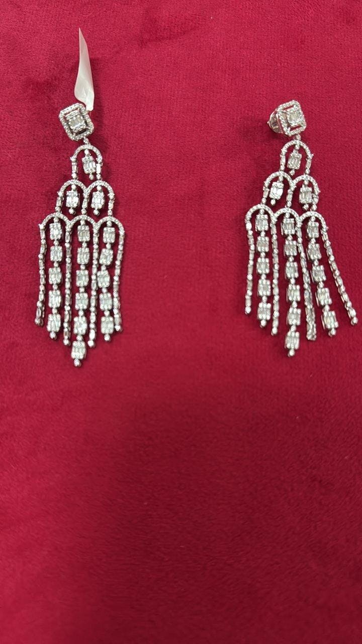 Add a touch of refined glamour with the KinniSoni Celestial Grace Dangler Earrings, exquisitely crafted from premium 925 sterling silver. These stunning earrings feature sparkling white Swarovski Zircon stones arranged in an elegant design with three delicate latki lines that sway gracefully with every movement. The intricate craftsmanship ensures each stone captures and reflects light beautifully, creating a mesmerizing sparkle that enhances your every look. Perfect for festive occasions, weddings, or elegant evening events, these earrings exude timeless sophistication and effortless charm.