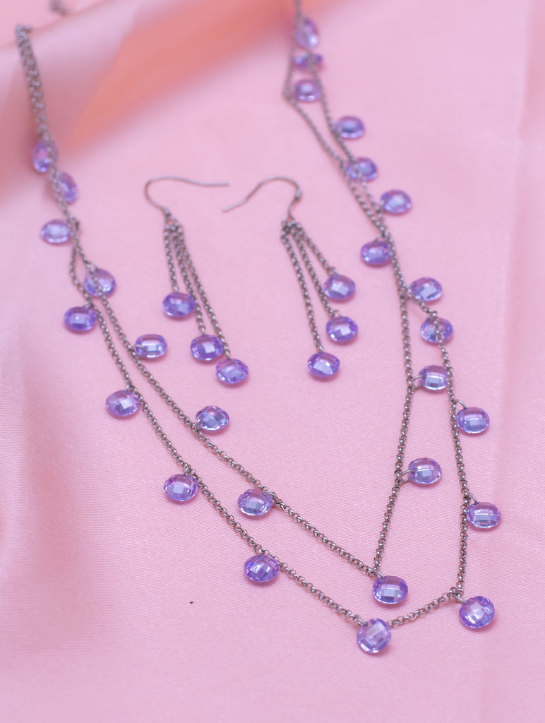 Double-Layer Blue Crystal Necklace & Earring Set