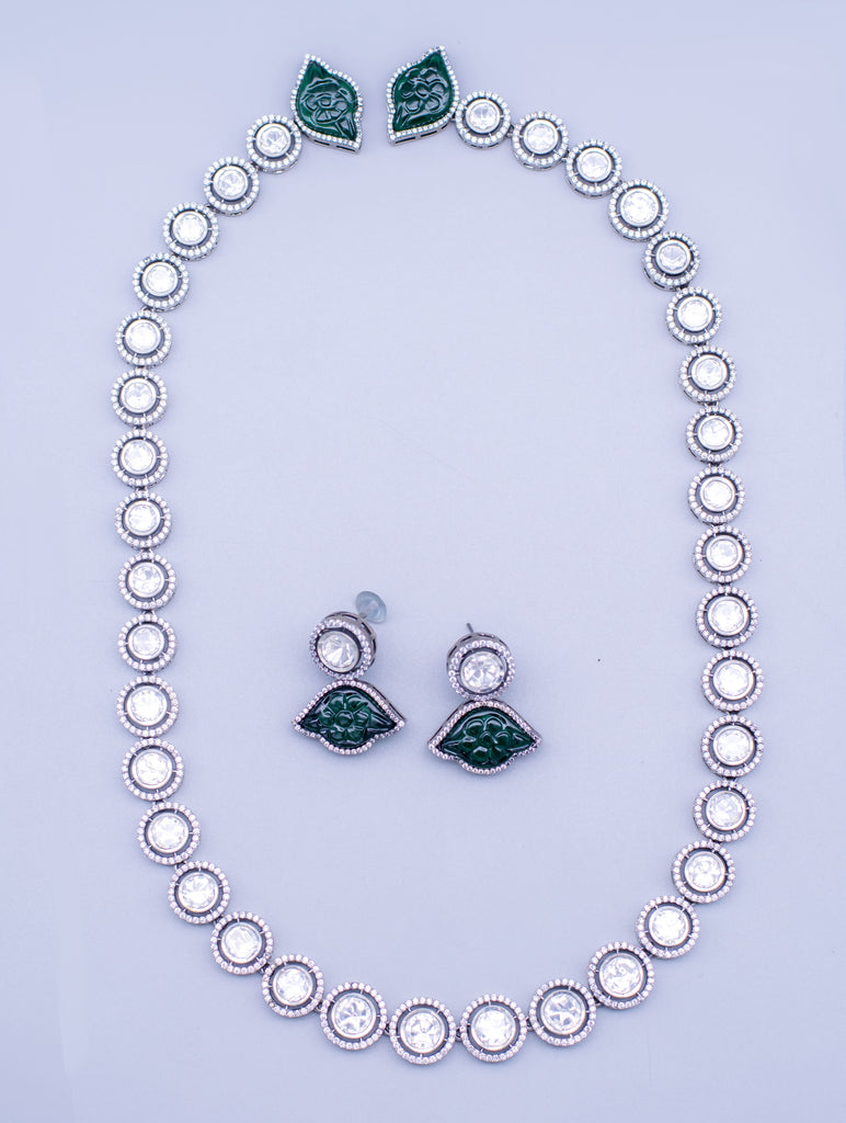 Long Silver Moissanite & Emerald Necklace & Earrings Set