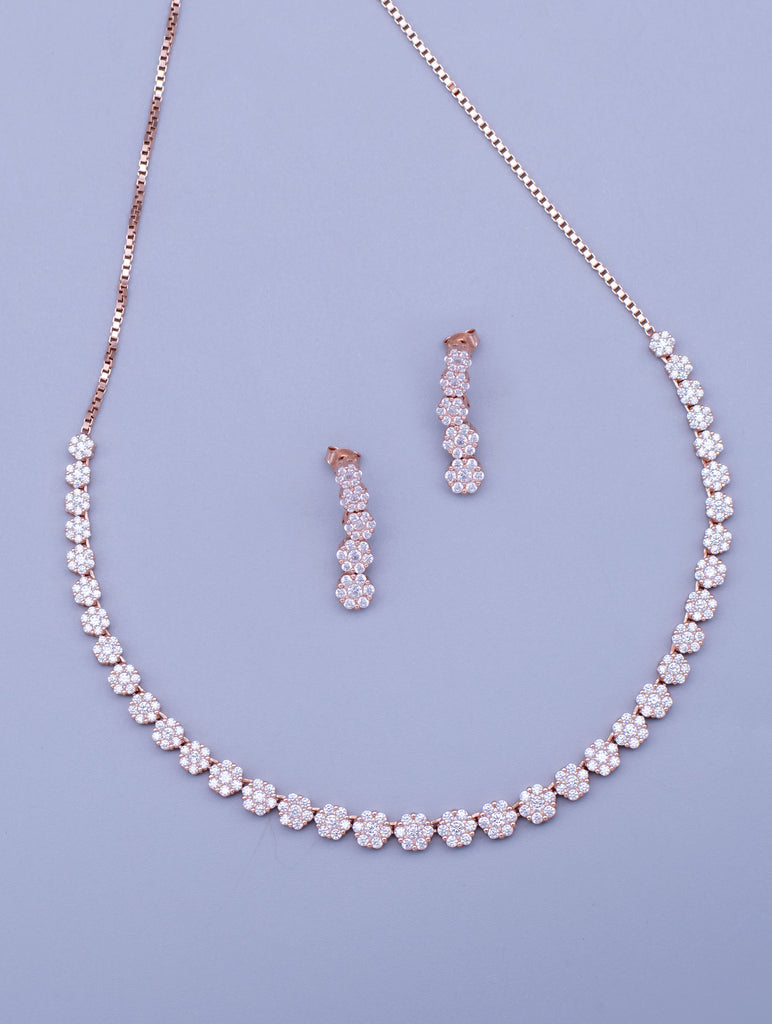 This elegant sterling silver short necklace and earrings set features dazzling cubic zirconia stones that sparkle with every movement. Whether you're dressing up for a night out or adding a refined touch to your daily style, this set is sure to elevate any ensemble with its timeless, sparkling charm.