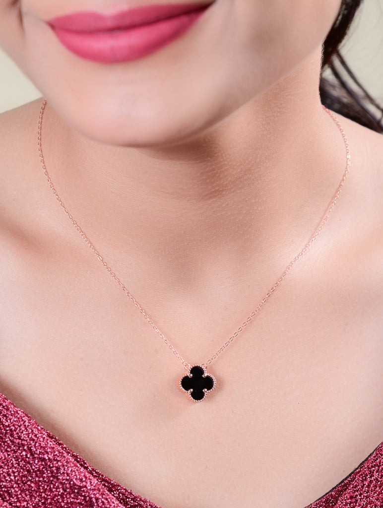 This elegant rose gold silver chain is adorned with a captivating onyx pendant, perfectly balancing minimalism and style. The deep black and white hues of the onyx bring a touch of drama, making it a versatile piece that adds sophistication to any ensemble, day or night.