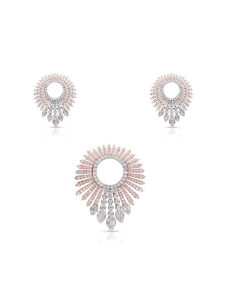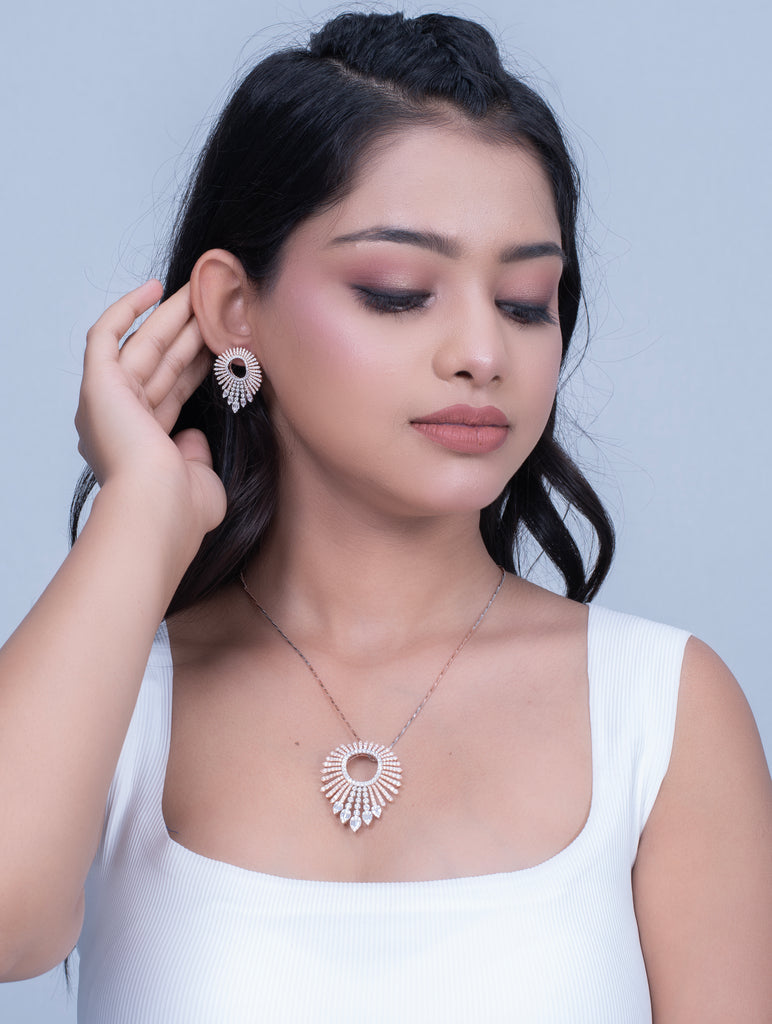 Sunburst Rose Gold Pendant & Earrings Set with Swarovski Zircon