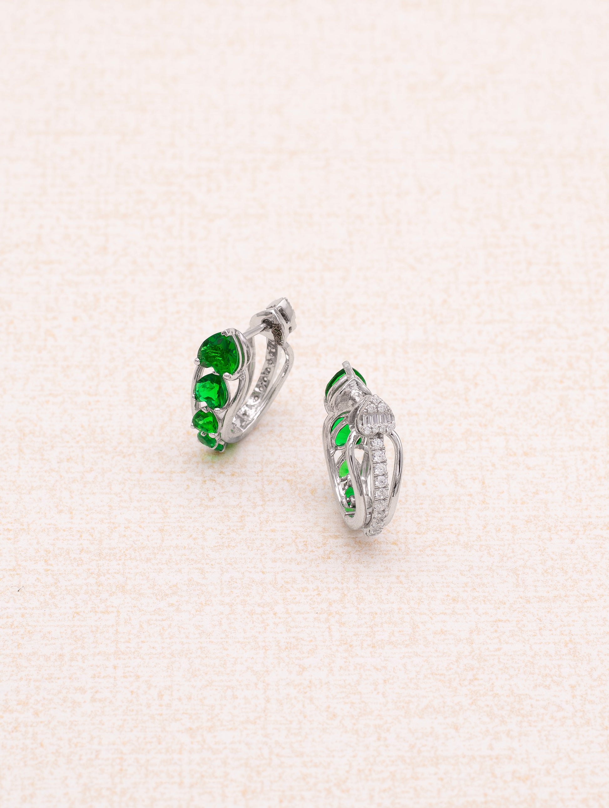 Elevate your style with these stunning 925 sterling silver hoop earrings, a perfect fusion of modern design and timeless elegance. Each earring features a beautifully aligned row of vibrant green gemstones—reminiscent of emerald or chrome diopside—meticulously set in a lustrous silver band. The radiant green stones add a refreshing pop of color, while the sleek silhouette ensures a versatile look suitable for both day and evening wear. Perfect for parties, festive occasions, or adding a sophisticated touch to your everyday ensemble.