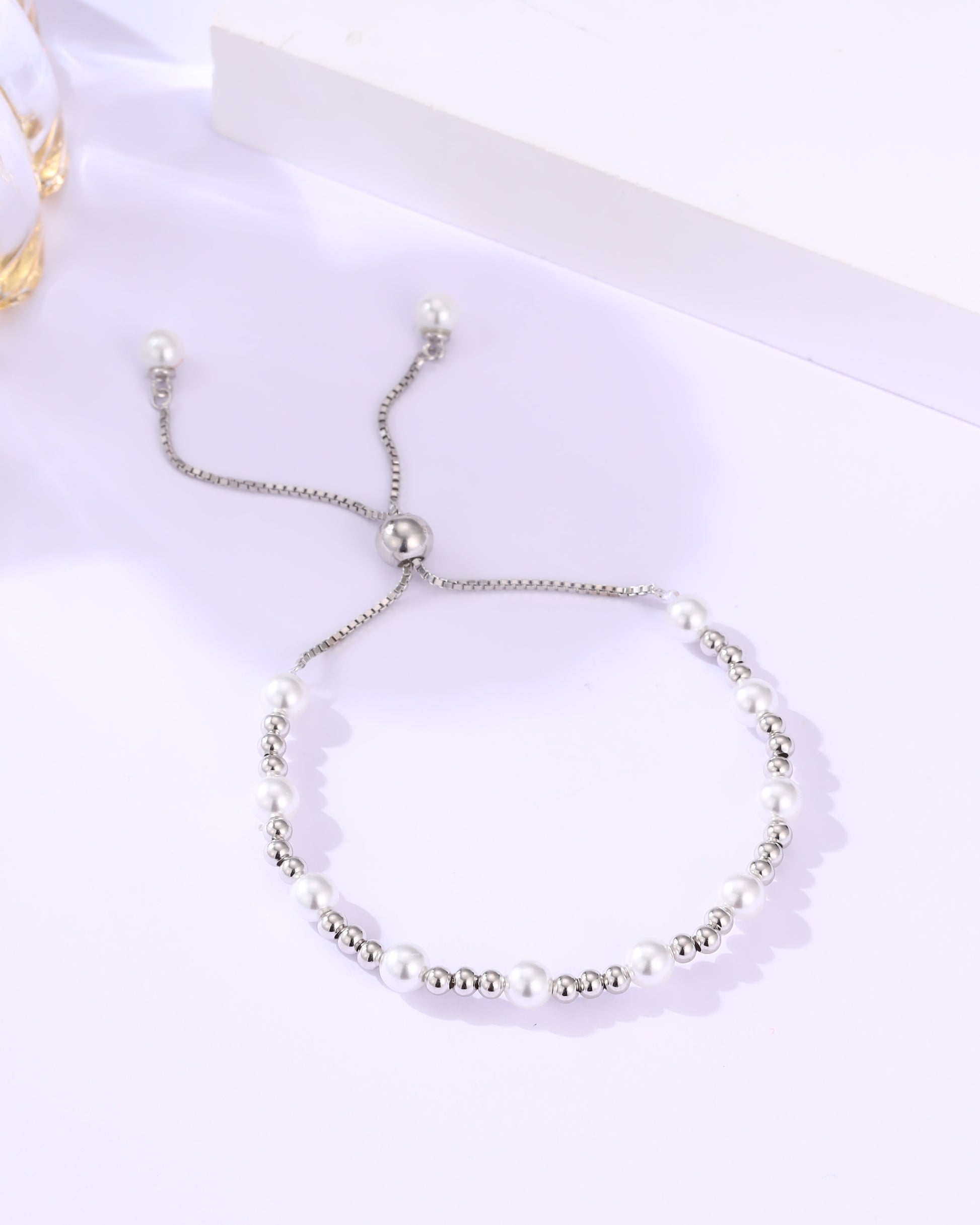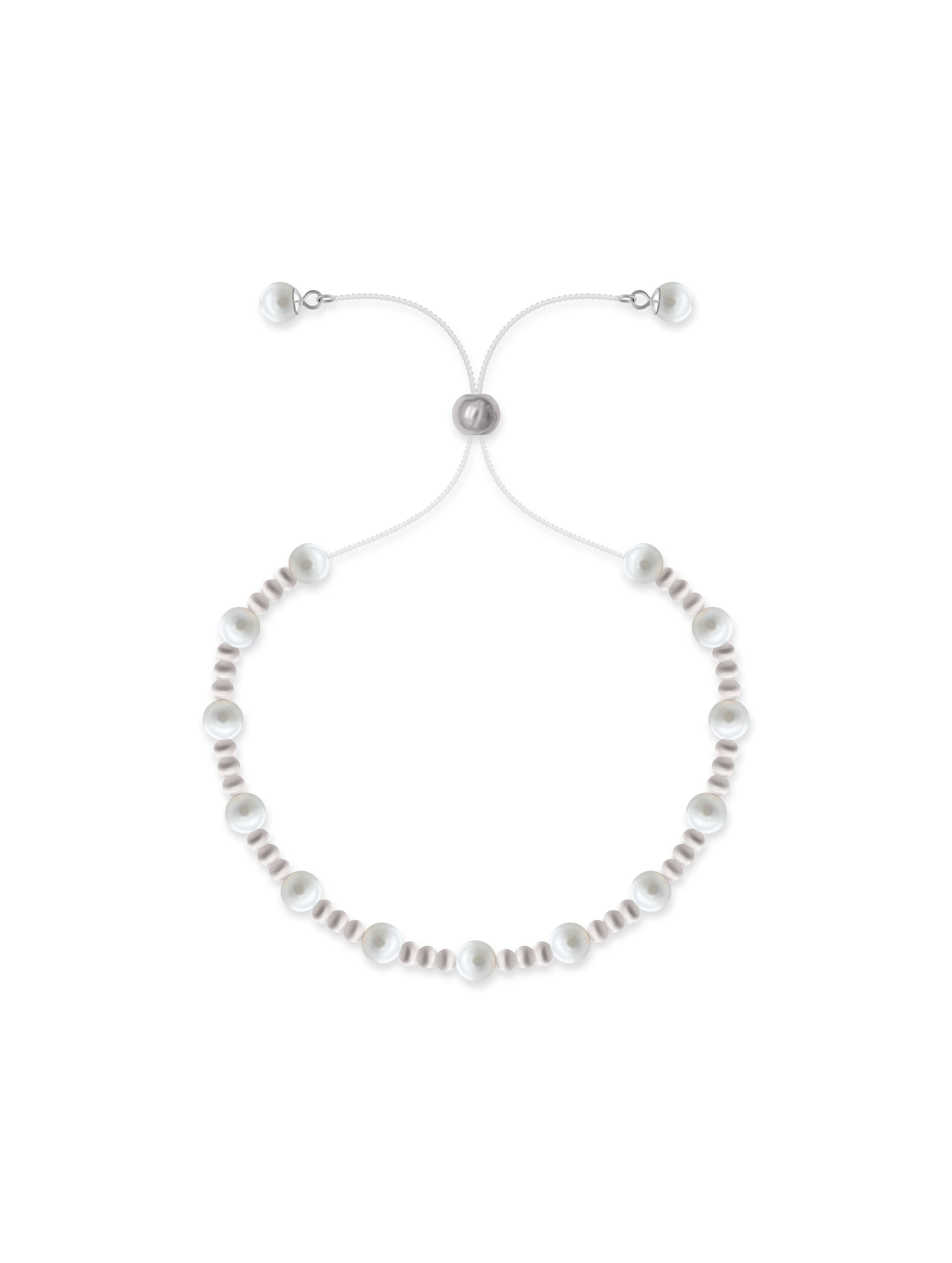 Designed for effortless style and comfort, this adjustable bracelet blends delicate sterling silver beads with radiant white pearls. Its versatile design and classic elegance make it a perfect accessory to complement any outfit, from everyday wear to special occasions.