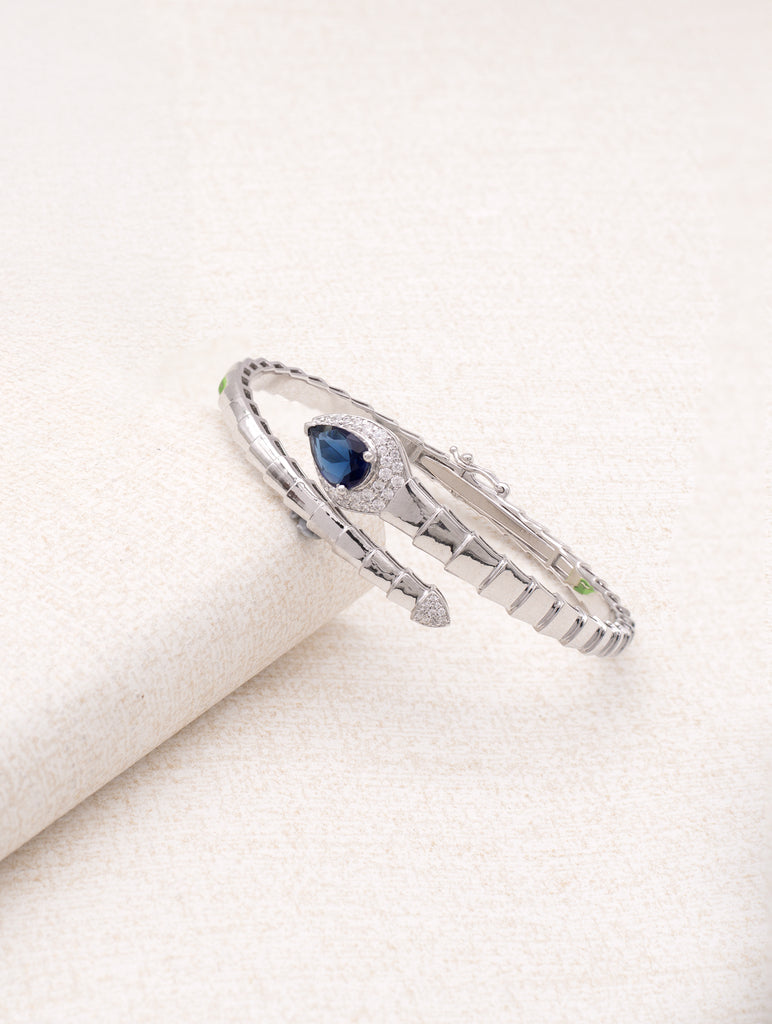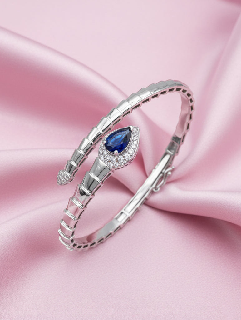 Blue Radiance 925 Silver Openable Kada Bracelet with White Swarovski Stones