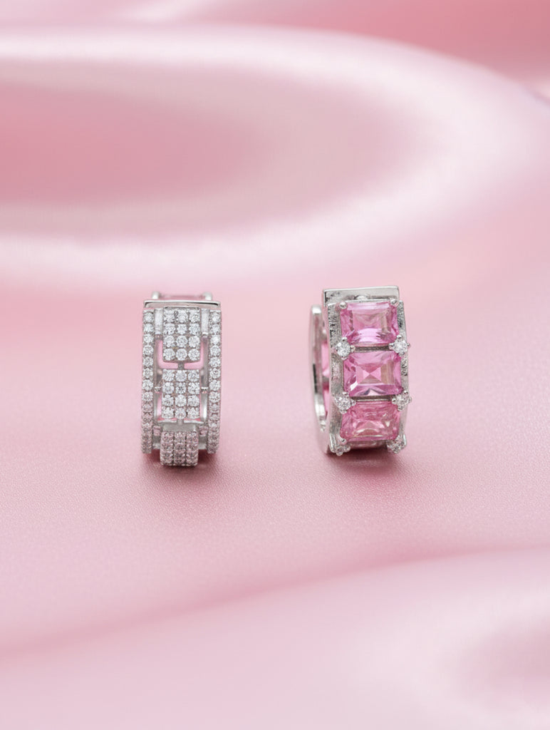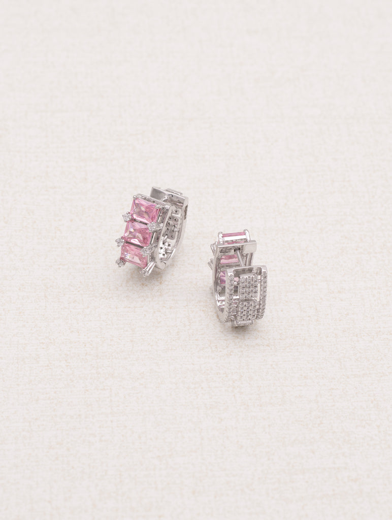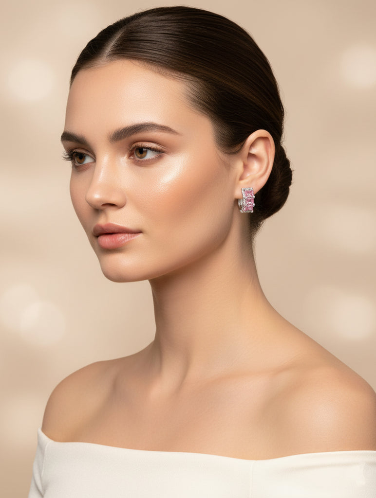 Blush Radiance 925 Silver Rose Gold-Plated Pink Stone Bali Earrings