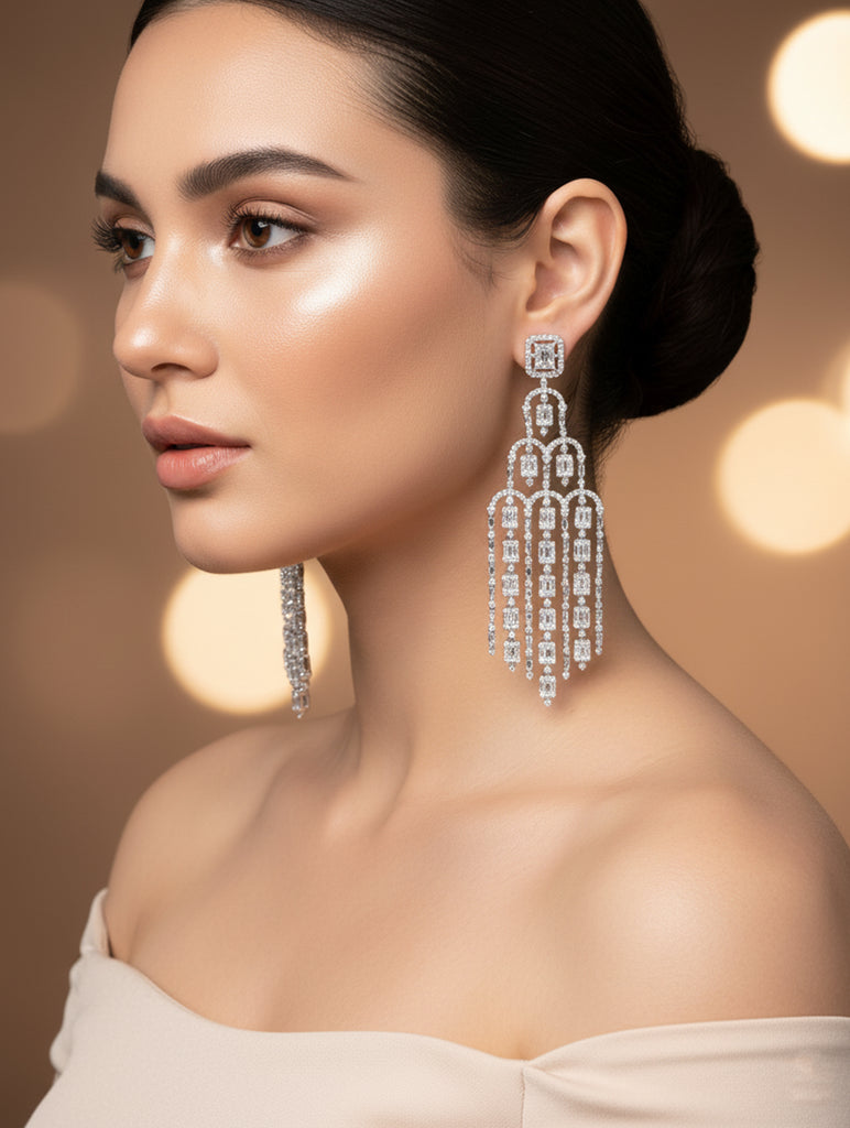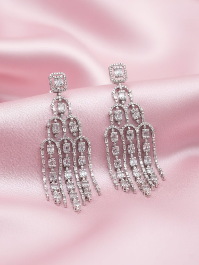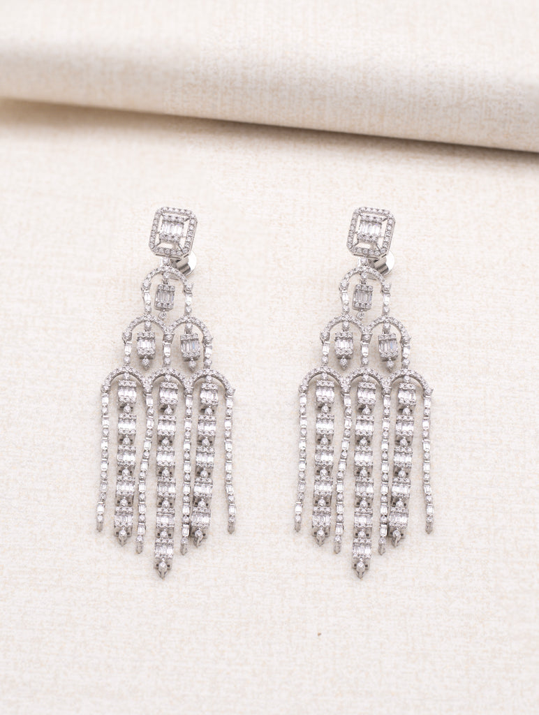 Celestial Grace 925 Silver White Swarovski Stone Dangler Earrings