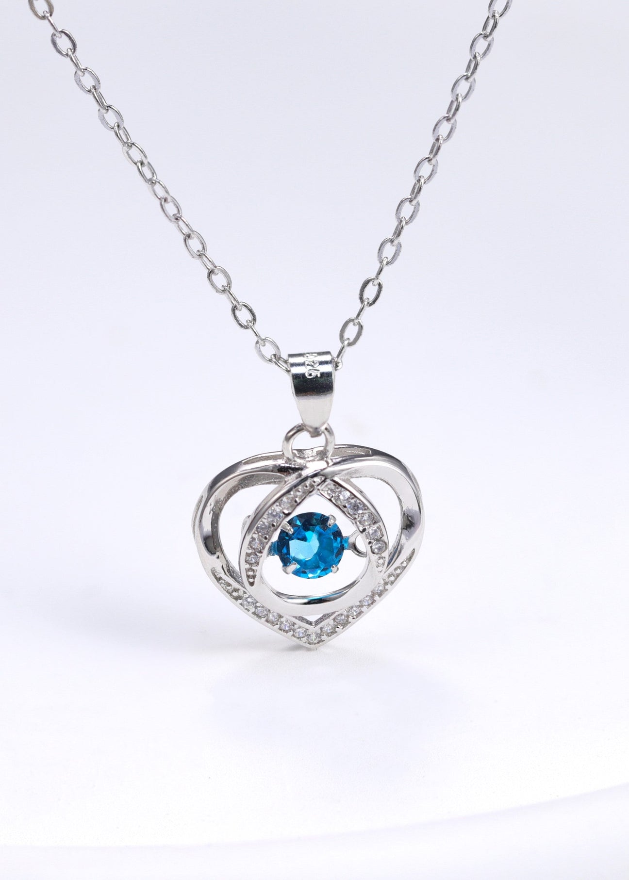 Discover the charm of our sterling silver chain, available in both silver and rose gold finishes. Featuring a heart pendant with a small blue stone at its center, this elegant piece adds a touch of love and sophistication to any outfit, perfect for both everyday wear and special occasions.
