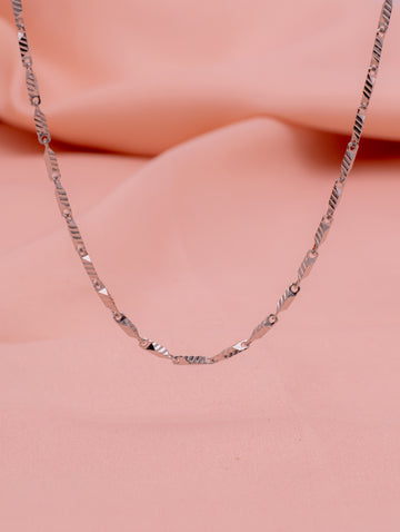 This sleek gents chain features uniquely shaped, angular links connected in a precise pattern, giving the piece a distinct geometric style. The polished silver finish enhances its contemporary and understated elegance. With a minimalist design, this chain is perfect for both casual and formal wear, allowing it to be worn solo for a subtle statement or layered with other pieces for a fashionable layered look.