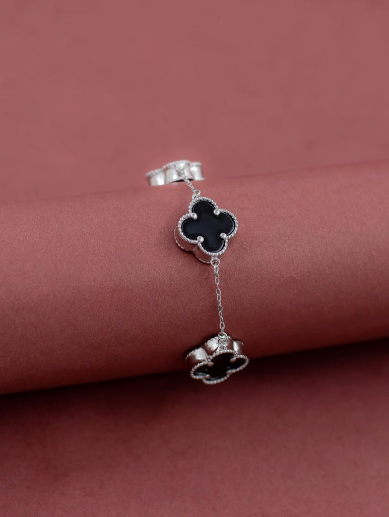 Crafted in polished silver, this elegant chain bracelet features a series of distinct shapes, each delicately inlaid with luminous mother of pearl. The soft iridescence of the pearls paired with the sleek design creates a refined and timeless accessory, perfect for elevating both everyday and special occasion looks.