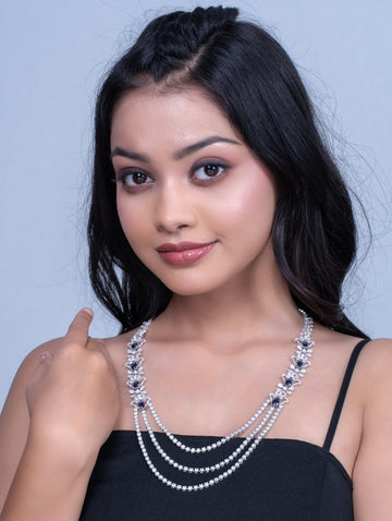 Silver-Tone Statement Necklace with Blue & White Swarovski Zircon